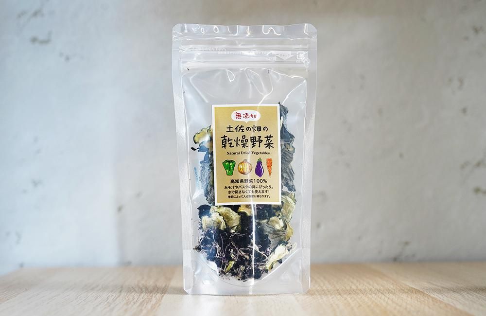 日高村を中心とした高知県産の野菜を使用。季節ごとの旬の野菜を、じっくり乾燥させました。地域のものにこだわり、化学調味料、保存料は一切使わず無添加。野菜本来の旨味・甘味がギュギュッと濃縮されています。